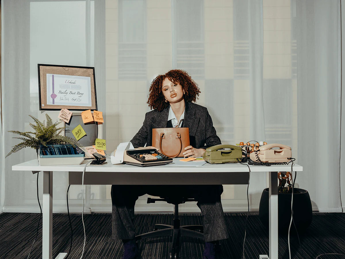 The two-toned design and distinctive geometric lines are inspired by our iconic BAILEY bag.